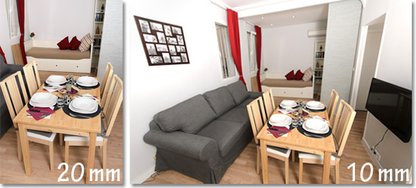 En la imagen superior, se utilizó un 10mm, pero, para lograr la suficiente nitidez en los libros de la estantería se tuvo que utilizar una apertura de f/7 y enfocar al segundo cojín de la cama. Por supuesto, el utilizar aperturas cerradas puede ocasionar un incremento del tiempo de exposición y con él la necesidad de utilizar un trípode.