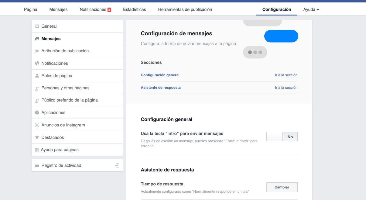 Facebook permite la programación automática de mensajes para las consultas más frecuentes. En la sección de Configuración de la Fan Page hay una solapa específica para Mensajes. Podrás enviar un saludo especial la primera vez que te hablan, enviar una respuesta cuando te contactan fuera de los horarios de atención o cambiar tu estado a “ausente” cuando no puedas responder mensajes.
