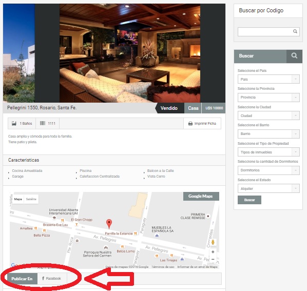 2- Ingrese a la propiedad que quiere cargar en Facebook
